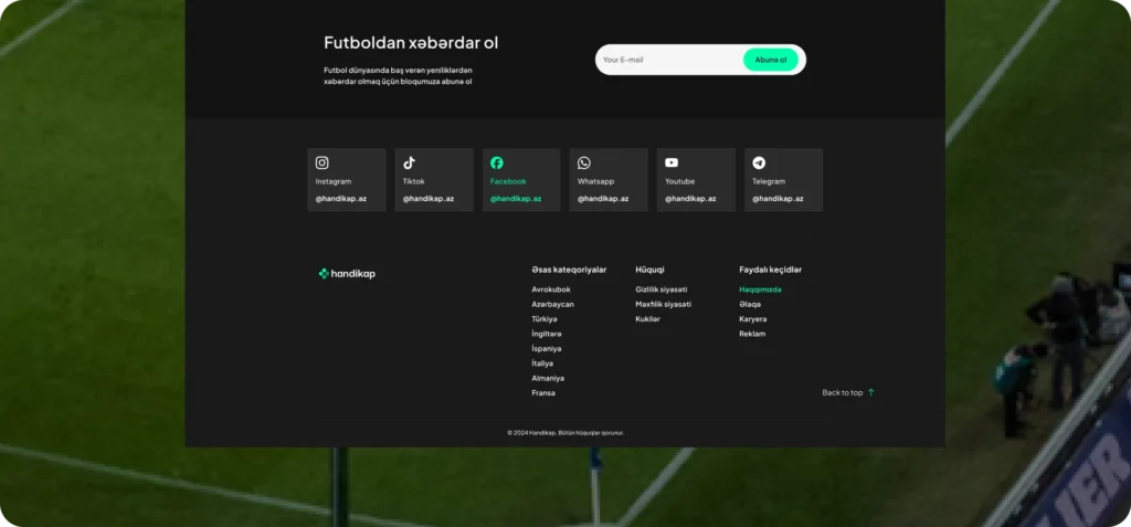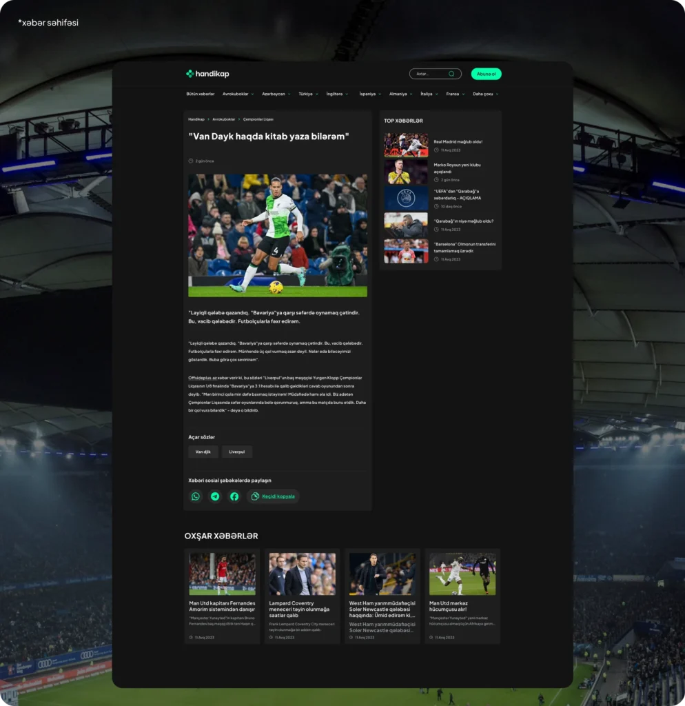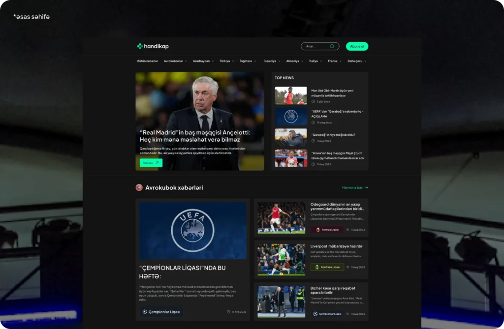 “Handikap” is a football-focused news platform aimed at the Azerbaijani market. Its goal is to deliver both local and international football news with fresh, analytical, and visually distinct content.