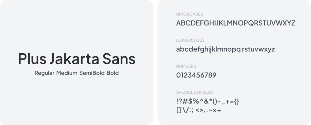 The main font chosen for the project is “Plus Jakarta Sans“. Its modern and functional look fits well with Handikap’s tech-driven and sports-focused identity.