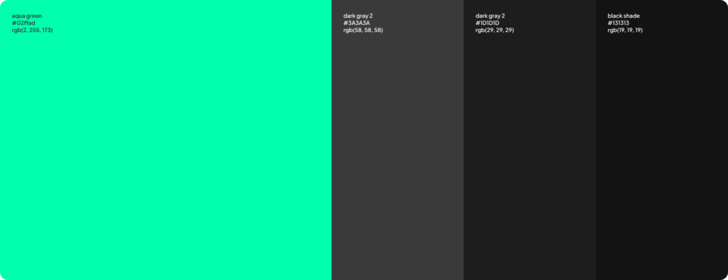 For backgrounds and typography, dark gray and black tones were used to maintain visual balance and improve content readability.